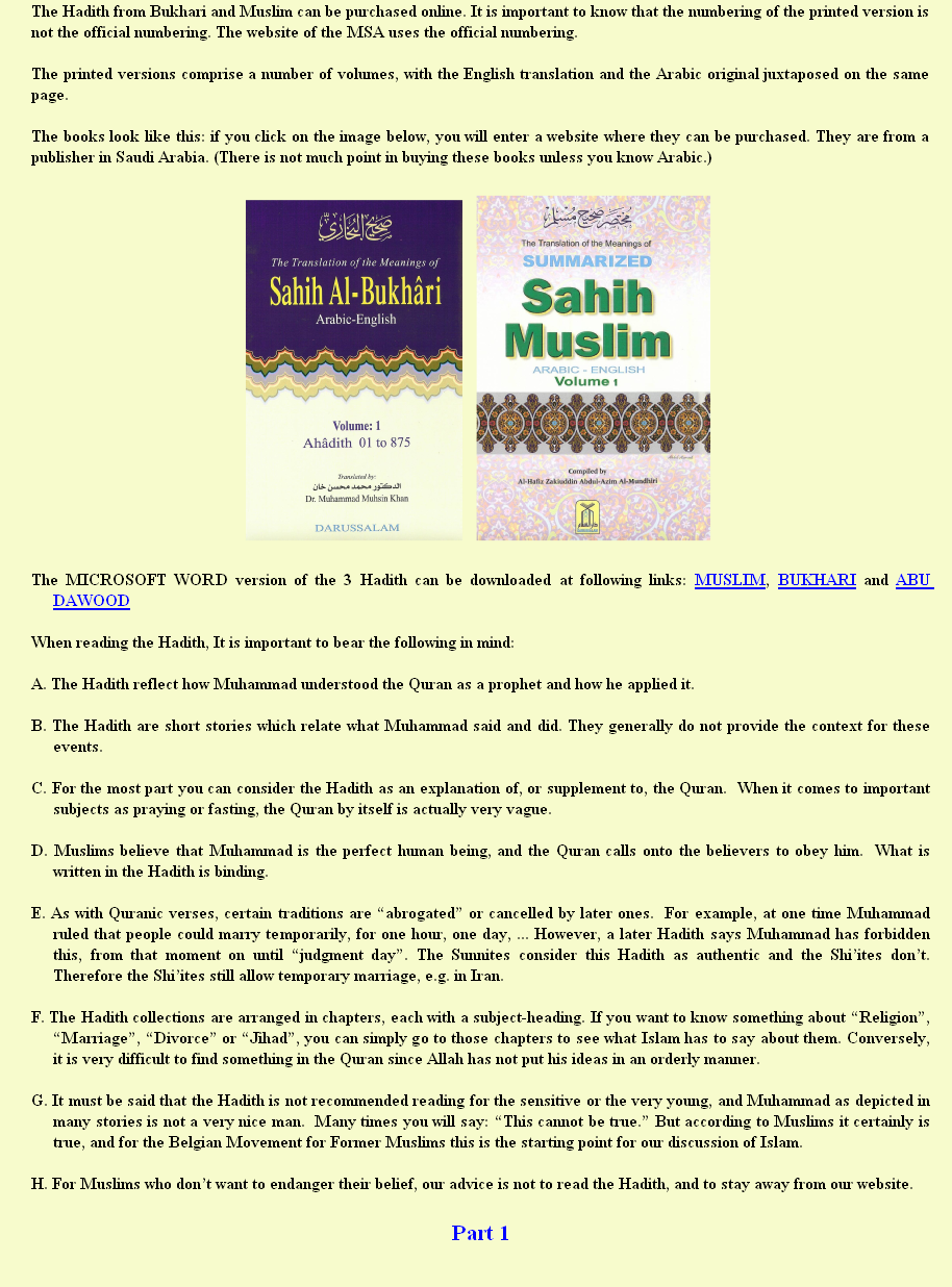 2. THE HADITH: Traditions of words and deeds of Muhammad, also called Sunnah (part 2)